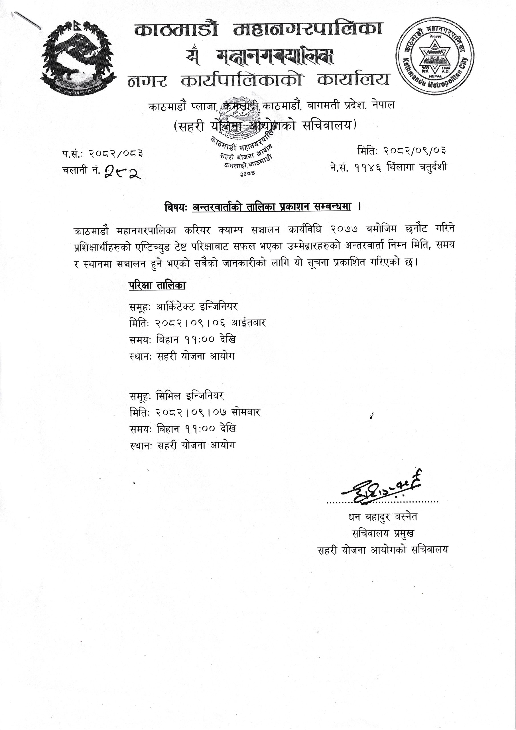 अन्तरवार्ताको तालिका प्रकाशन सम्बन्धमा।