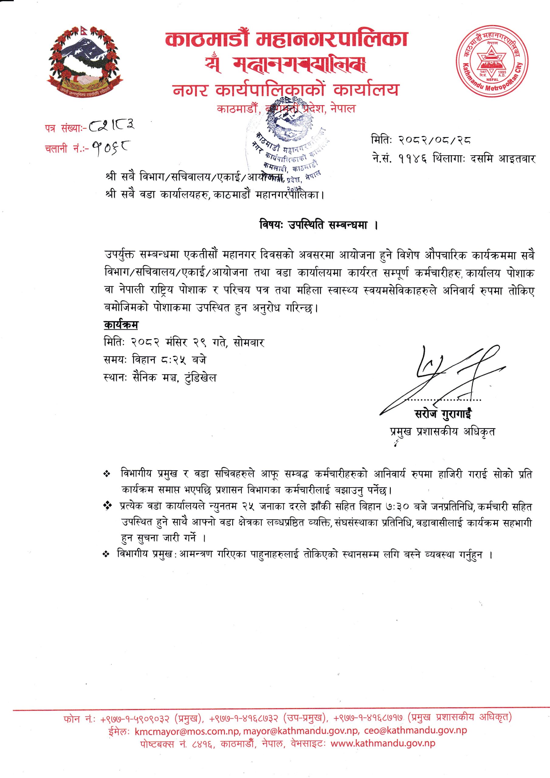 उपस्थिति सम्बन्धमा।(श्री सबै विभाग/सचिवालय/एकाई/आयोजना/सबै वडा कार्यालयहरु)