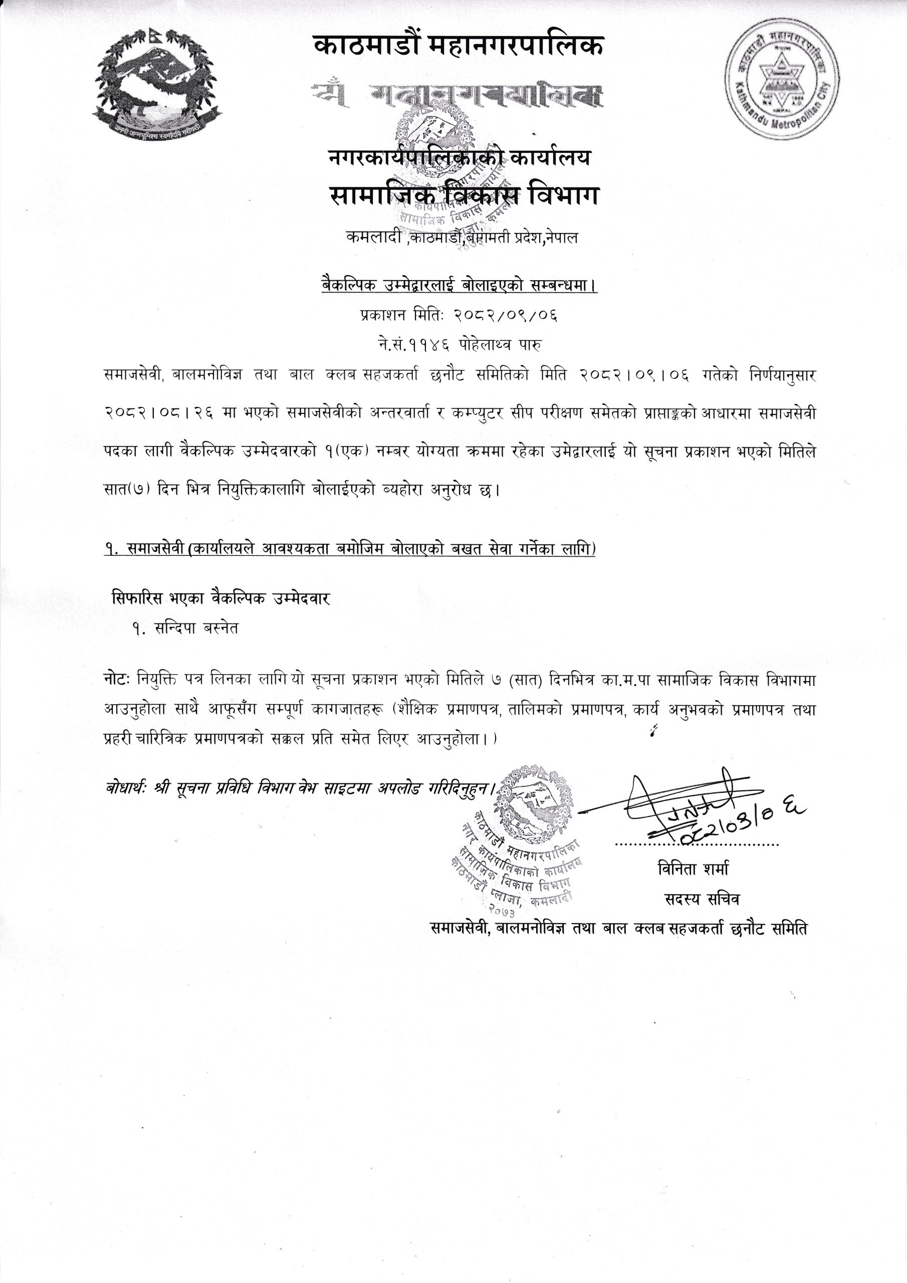 बैकल्पिक उम्मेद्वारलाई बोलाइएको सम्बन्धमा।