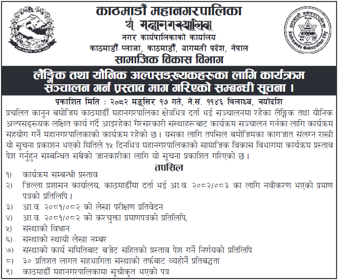 लैङ्किक तथा यौनिक अल्पसङ्ख्यकहरूका लागि कार्यक्रम सञ्चालन गर्न प्रस्ताव माग गरिएको सम्बन्धी सूचना !
