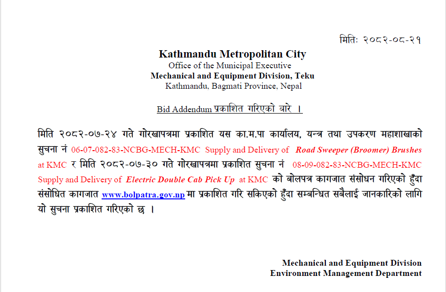 निमन्त्रणा सम्बन्धमा। (श्री सबै वडा अध्यक्ष ज्यू, सबै कार्यपालिका सदस्य ज्यू, सबै विभागीय प्रमुख ज्यू काठमाडौँ महानगरपलिका )