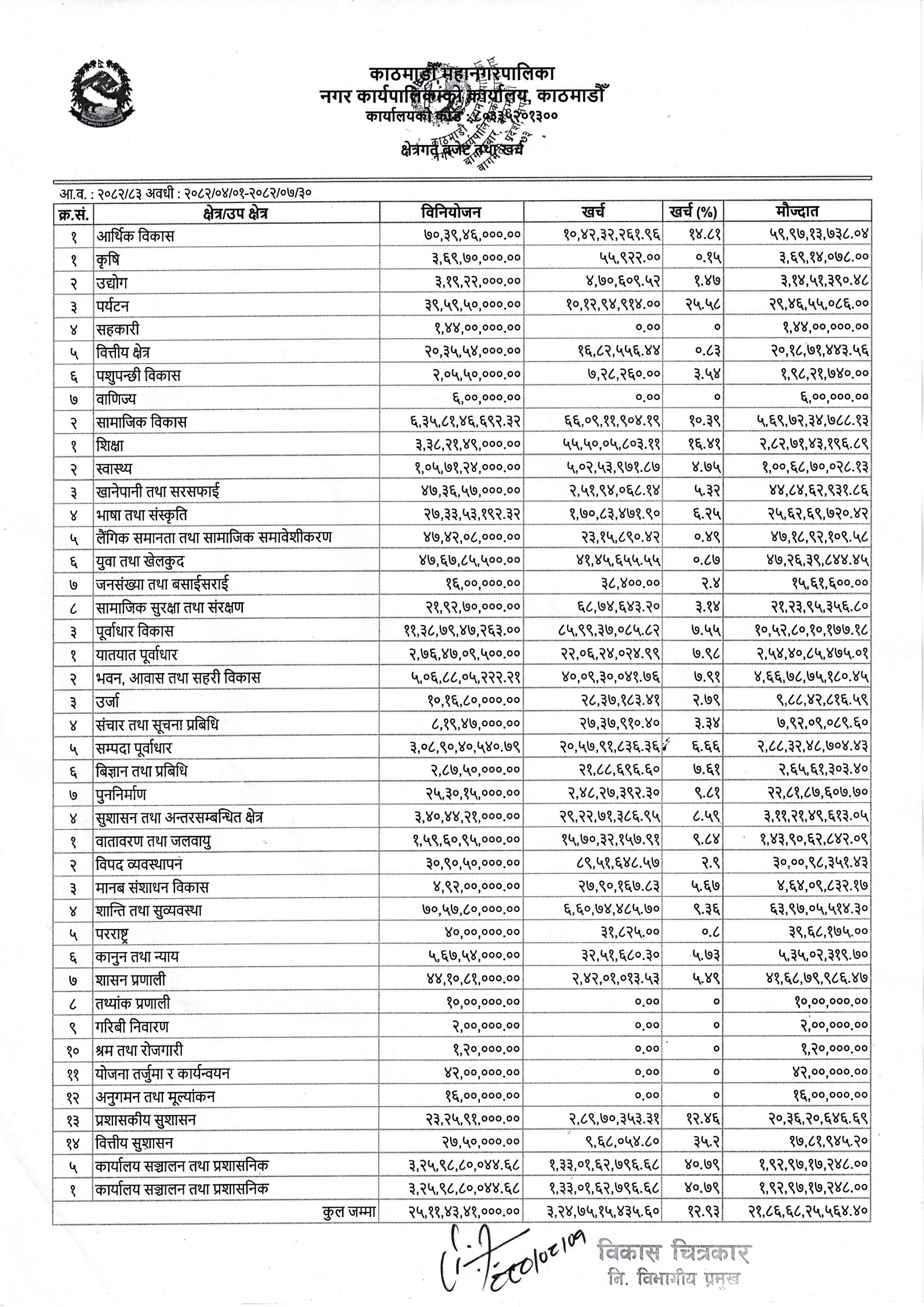 क्षेत्रगत बजेट तथा खर्च। (आ.व. २०८२/८३ अवधीः २०८२/०४/०१ – २०८२/०७/३०)